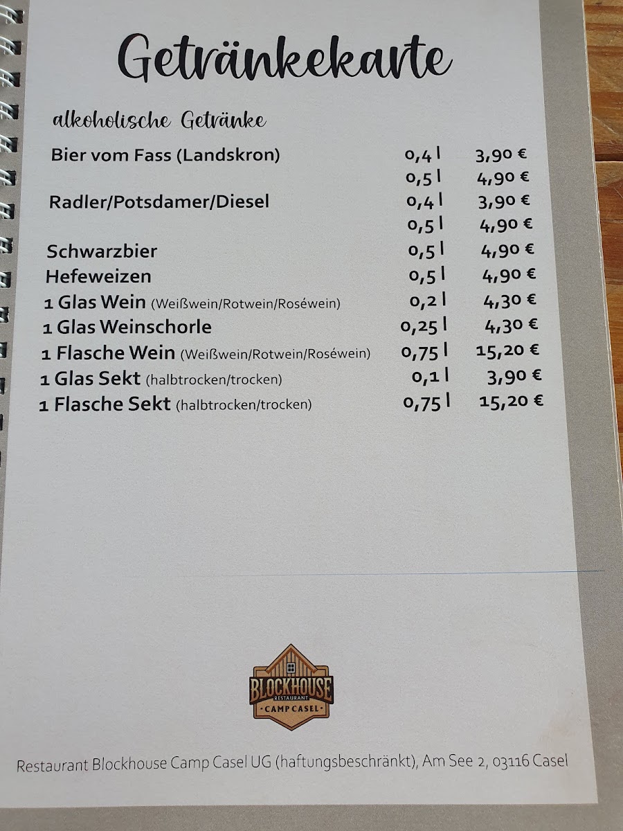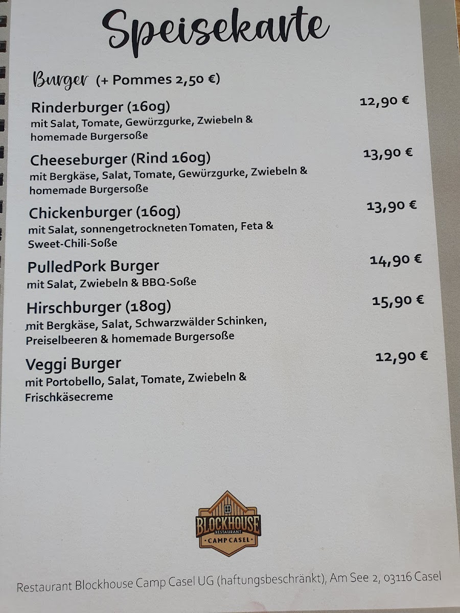 Restaurant Blockhouse Camp Casel UG (haftungsbeschränkt) Menu